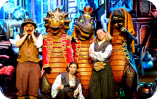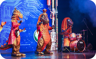 С потрясающей графикой, наполненной яркими красками современных видеотехнологий, шесть актеров, динозавры на сцене, песни с динозаврами в незабываемом обучающем путешествии во времени. Костюмы динозавров изготовлены лучшими художниками в Москве
